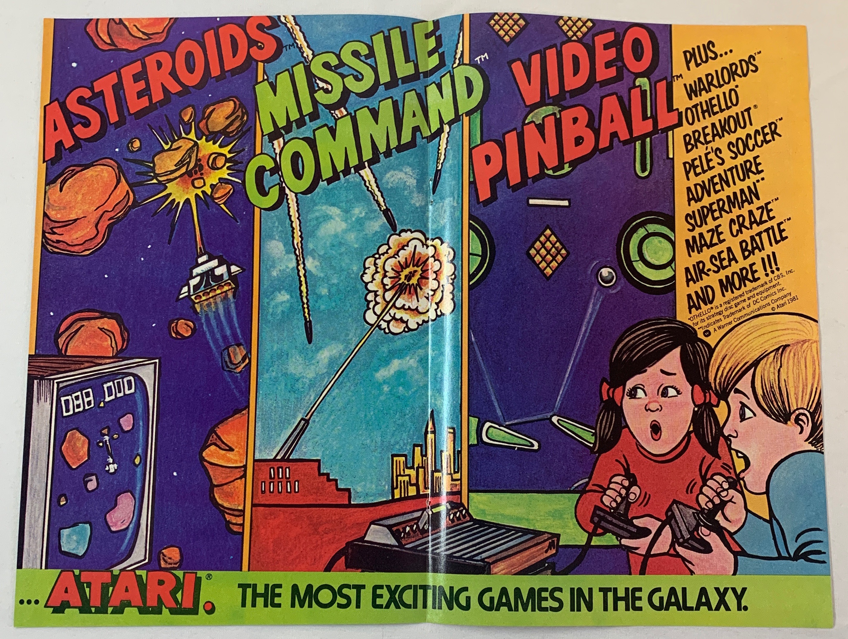 1982 Atari Space Invaders, Asteroids, Missle Command ~ centerfold ad 10×13 inchFine6.59